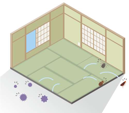 い草は、空気中の二酸化窒素や二酸化硫黄など(ホルムアルデヒド)を吸着・分解し、有害物質をほとんど再放出しません。